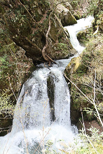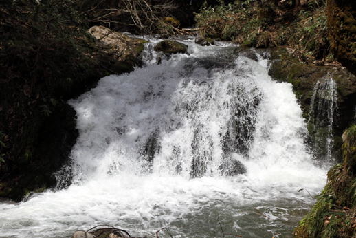 左の山道は,桑の沢から急峻な大倉(タイグラ)に出る道です。大倉を上るとしめ掛けに出て,法師川沿い表参道の「しめ掛けブナ道」の道標を通り,しめ掛けを上がり尾根道を過ぎ竜神沼に出て,大円院に至ります。