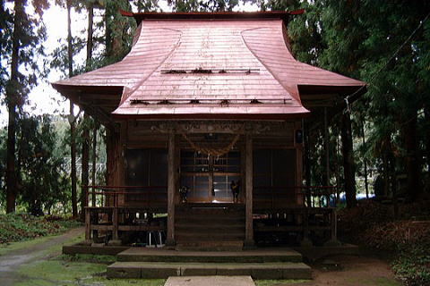 稲下鹿子踊が奉納される神社、稲荷神社。「南出羽の城」(保角里志 高志書院 2006)には神社の周りに堀と土塁の跡があり土豪の館跡とみられる、と紹介されています。