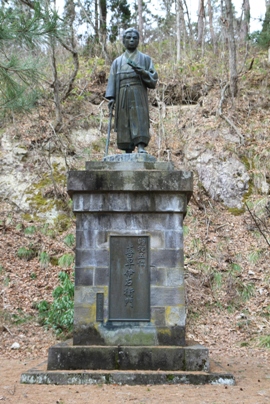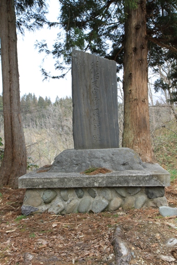 猿羽根山明治天皇小憩所記念碑 猿羽根山地蔵尊から最上川を望む