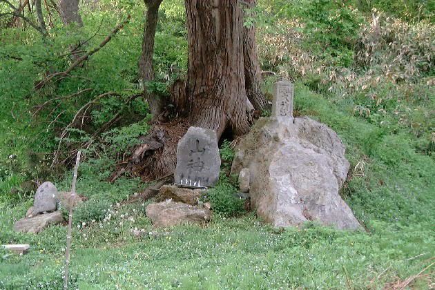また、この山神の小祠と道をへだてた左側は沢や川になっていて、その地は姥沢、宇沢、白滝などと呼ばれ、小さな滝状になっている所が多く、付近には姥様や不動尊が祀られています。さらにその沢や川は多くの場合村里の用水堰や田水堰の水源地となってます。そして山の神小祠の付近にはお田天様、大黒様が祀られていると伝えられ、お田天、お福田、大黒なでなどの地名を残しています。さらに付近には秋の山神祀りに隠れ賭博をした所と伝えられる洞窟(バクチ穴)が残っています。このように、山神は地区と山との境、山と平野との境の岩倉に鎮座しています。